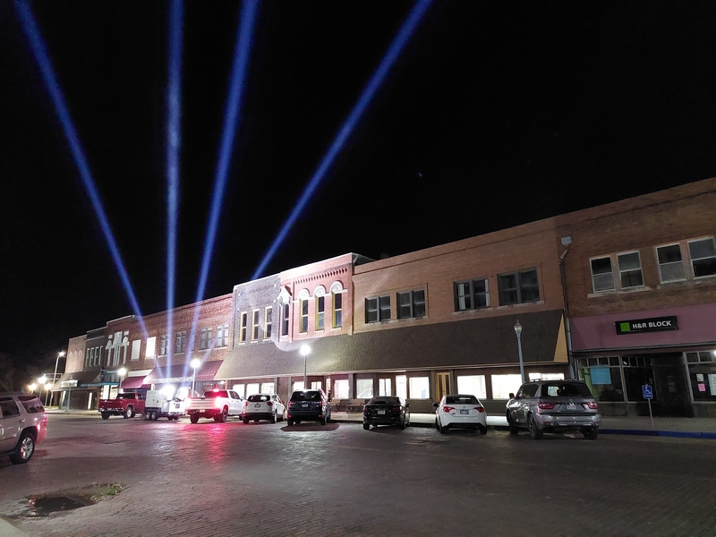 A nice touch for celebrating the Grand Opening were the search lights out front on Friday night.